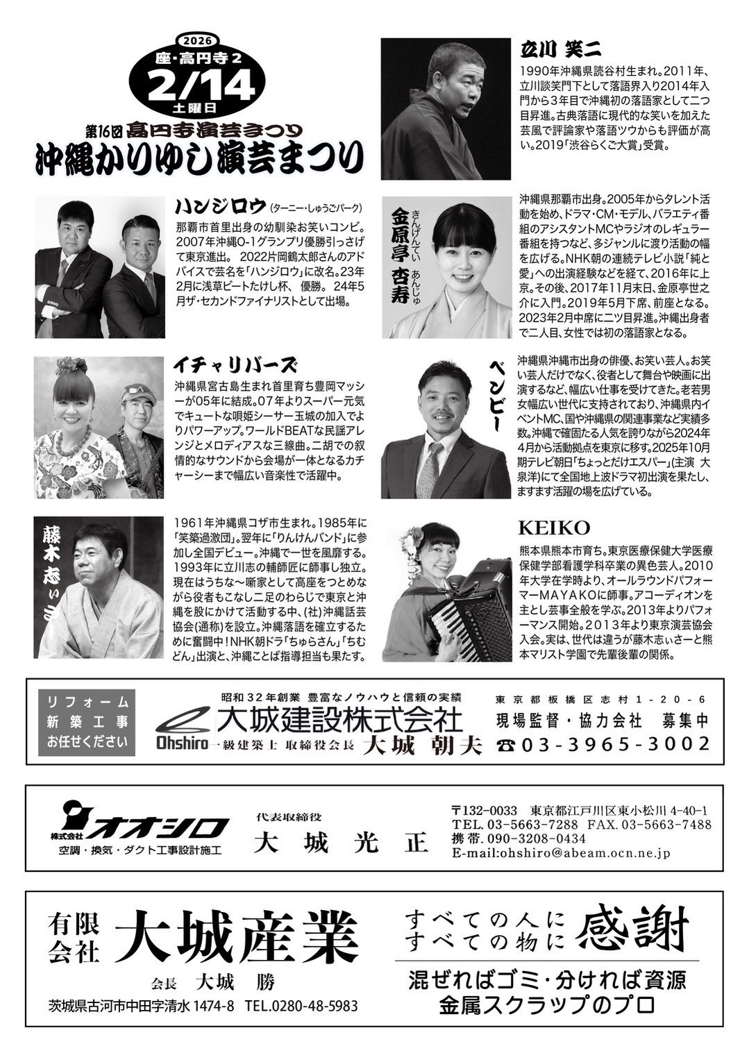 第16回「沖縄かりゆし演芸まつり」 が東京・高円寺で開催されます。